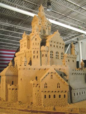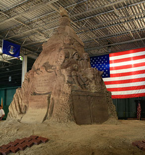 To leverage the fundraising efforts for the construction of the Veterans Memorial, Plainwell artist and resident, Charlie Wakefield created a 10-foot sand castle weighing in at 20,000 pounds that attracted spectators from near and far. The sculpture was housed temporarily inside the former Plainwell Paper Mill.