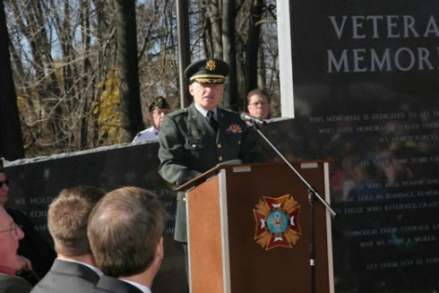 Dedicated on November 11, 2009. Located in Sherwood Park with the murmur of the Kalamazoo River in the background, the Greater Plainwell Veterans’ Memorial is a place of quiet reflection and respect. Sponsored by Plainwell Memorial Post 9377 – Veterans of Foreign Wars.